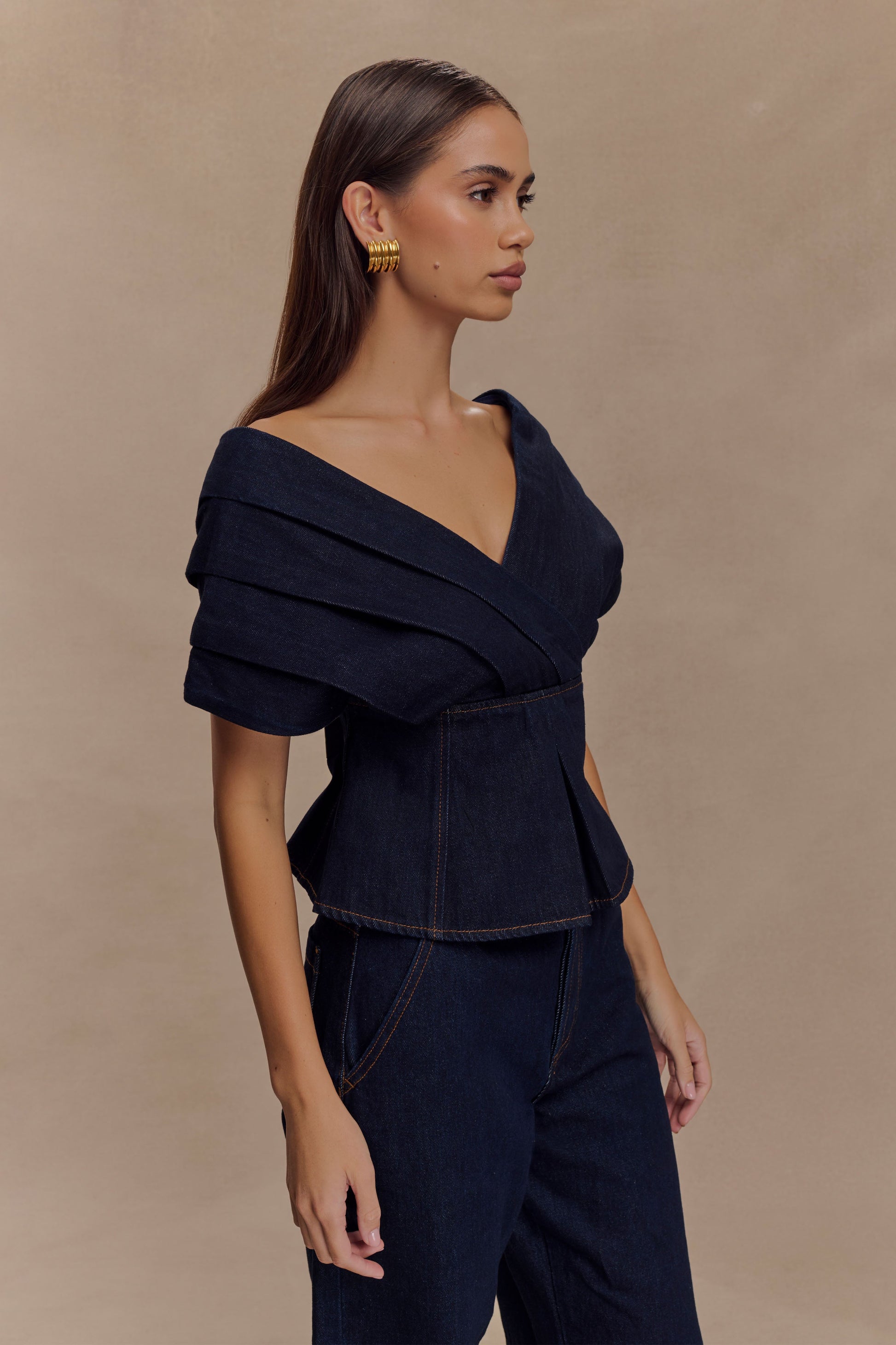 Rayne Haut en jean à épaules dénudées - Bleu indigo
